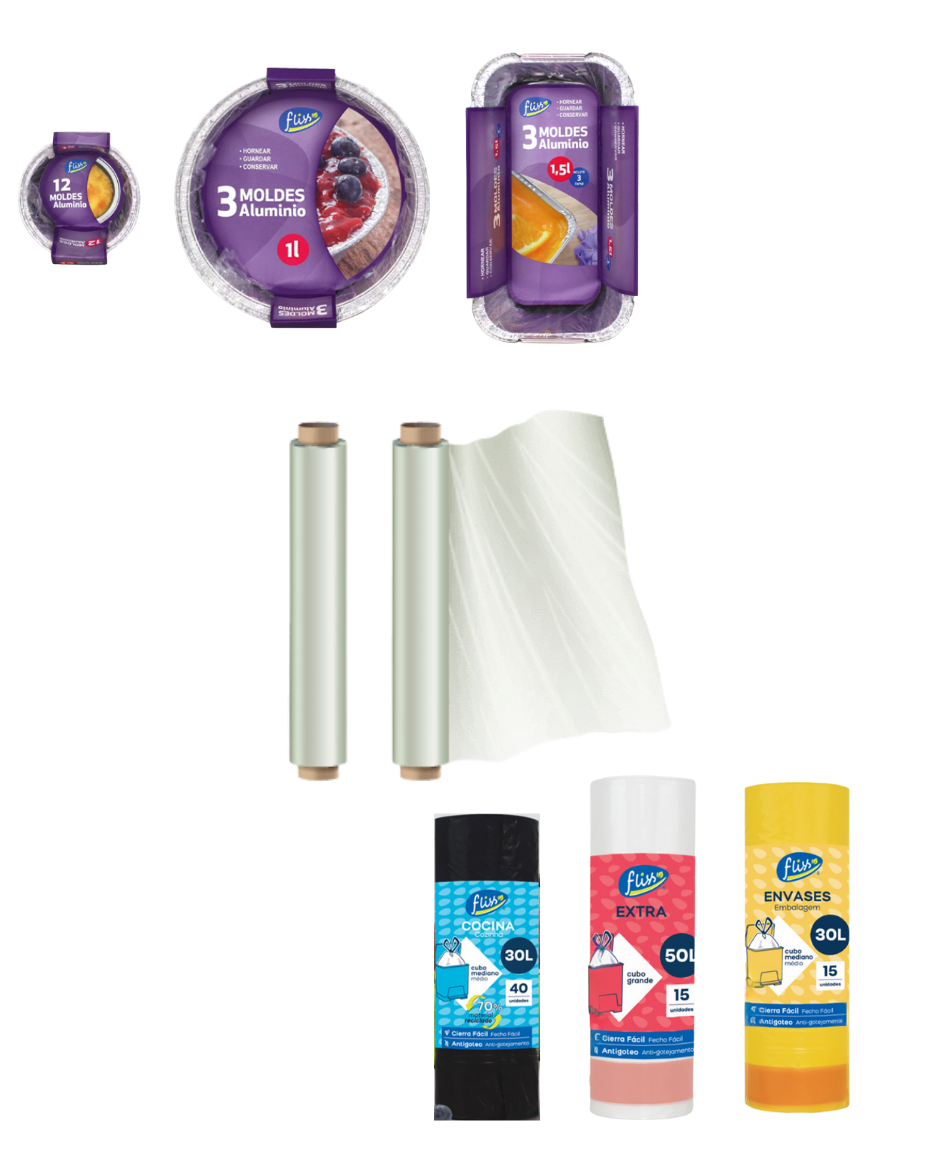 Productos para el hogar: menaje, bolsas, films, moldes y soluciones de empaque.