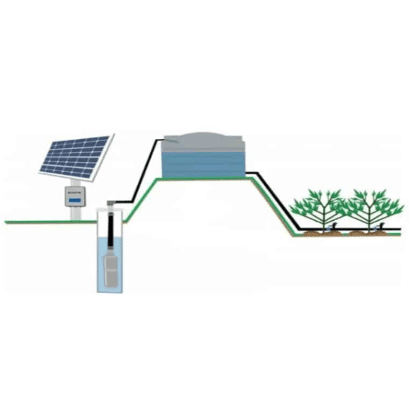 Cuándo usarlo: Parcelas pequeñas/medianas, buena irradiación y demanda diurna. Ventajas: Menor inversión y menos complejidad; ideal para goteo o aspersión. Considera: Riega cuando hay sol; si necesitas más horas, sobredimensiona paneles o combina con híbrido.